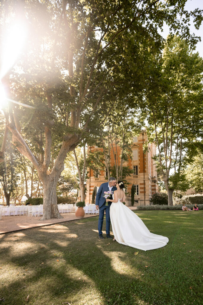 Au Château la Beaumetane, quand le lieu devient le décor de votre histoire, chaque espace semble avoir été pensé pour accueillir vos instants précieux. La chambre nuptiale offre à la mariée une lumière douce pour ses préparatifs, tandis que le marié dispose d’un salon privatif. La verrière, les salons et les escaliers majestueux deviennent des cadres parfaits pour vos photos, tandis que le parc et la gloriette offrent des décors enchanteurs pour vos cérémonies et vos séances couple.